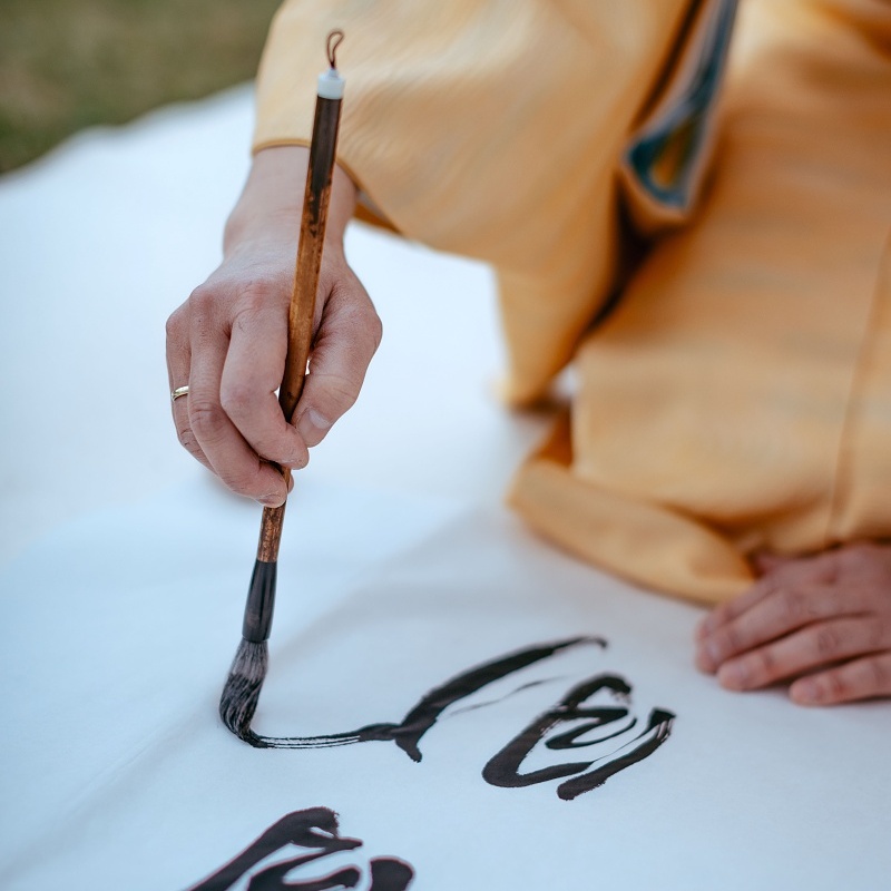 Na jejích demonstracích psaní velkoformátové kaligrafie můžete zhlédnout úplně poslední fázi procesu tvorby kaligrafického díla – samotný akt vzniku kaligrafie.
