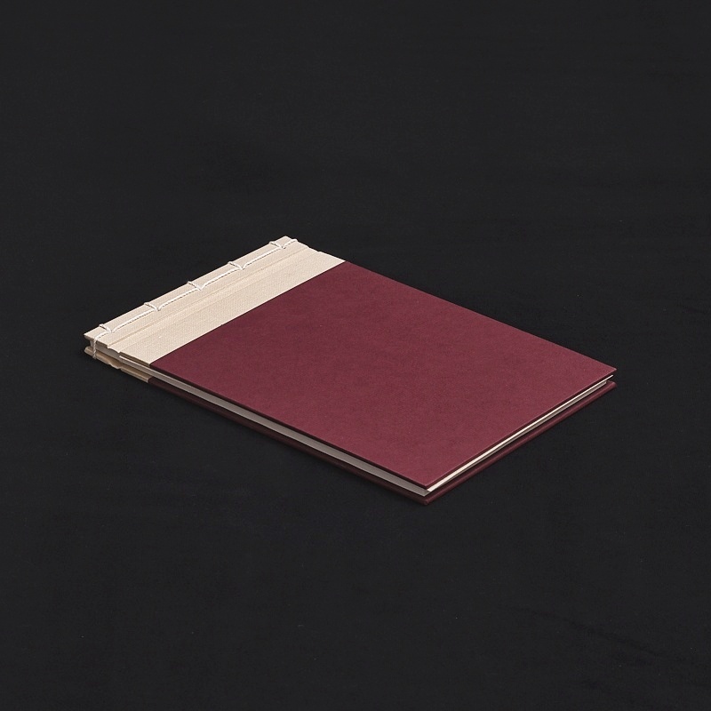 Japonská pevná vazba vázaná ze 3 druhů japonských papírů různé tloušťky, 43 listů o rozměru 190 x 149 mm, 217 x 155 mm, doplněno pijákem proti propíjení. Vhodné pro kaligarfii i tušovou malbu. Ruční výroba profesionální knihařkou v ČR.