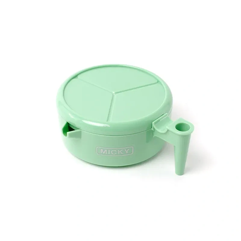 Plastová nádobka na tekutou tuš, zelená barva. Rozměr: Φ10.5×5cm. Země původu Japonsko. Slouží k nabírání tuše s možností regulovat její množství ve štětci. Současně je možné nádobku využít jako podložku pro štětec, příp. stojánek na štětec (svislá poloha - štětec zasunete a zamezíte tak jeho rychlému vysychání)