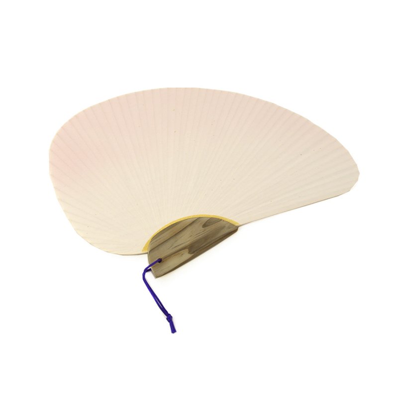 papírový vějíř pevný, bambusová kostra, dřevěné držadlo, vhodný pro psaní kaligrafie, přibližný rozměr 31 x 23,5 cm (vzhledem kruční výrobě se může mírně lišit), země původu Japonsko, lehce narůžovělý nádech papíru s jemným třpytkováním