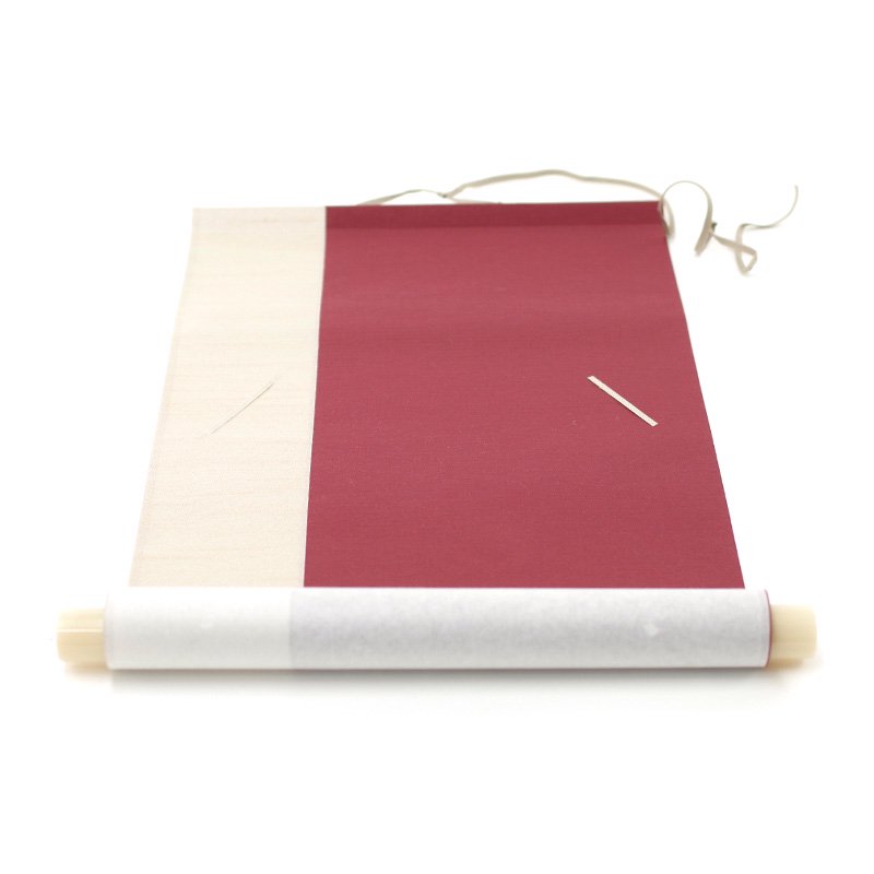 Svitkový rám pro formát šikiši (24,1 x 27,1 cm), rolovací, hlavní barva fialovočervená, rozměry svitku 31 x 71 cm, svitek uložen v elegantní krabičce, země původu Japonsko